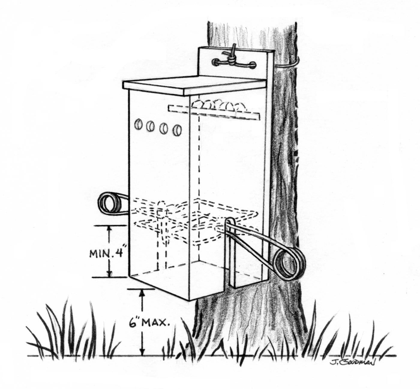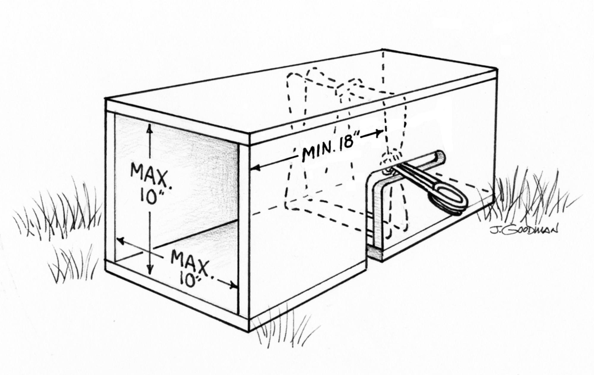 claw at the trap’s floor which is bad when a trap is set on a roof or any surface you do not want damaged. Prevent this by placing the trap on a piece of plywood. Keep in mind they will reach through the traps mesh to try and get at anything within reach, both top and sides.